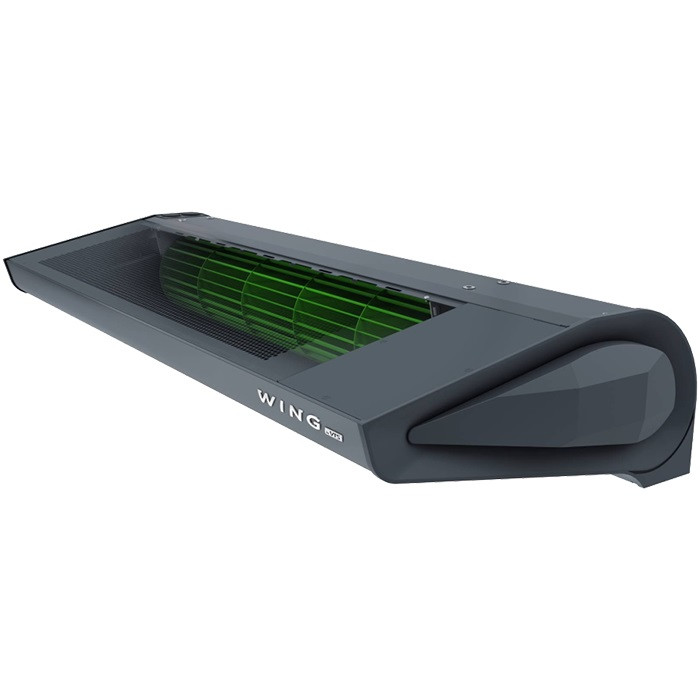 Воздушные завесы WING (водяные, без нагрева) могут работать, как в в горизонтальной, так и в вертикальной позициях. Завесы WING c электрическим нагревателем разрешено монтировать и эксплуатировать только в горизонтальном положении. Благодаря конструкции, небольшой высоте корпуса, а также возможности забора воздуха под наклоном, завесы можно устанавливать в ограниченном пространстве над дверными проемами, и такой способ не повлияет на эффективность.